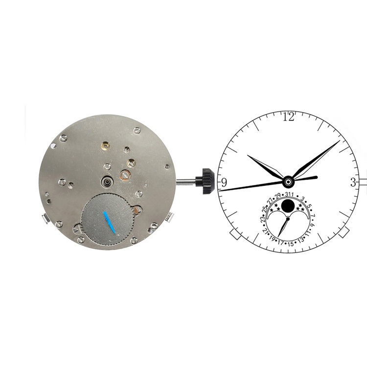 Introducing the Miyota 9015 Watch Movement from Japan, a true marvel of horological engineering. This exceptional timepiece has undergone a modification, adding a moon phase function and a date calendar display at 6 o’clock. With its four-hand movement, it offers precise timekeeping and enhanced functionality.