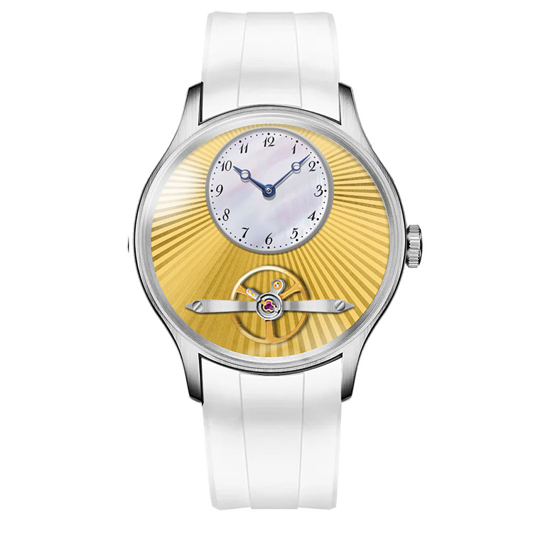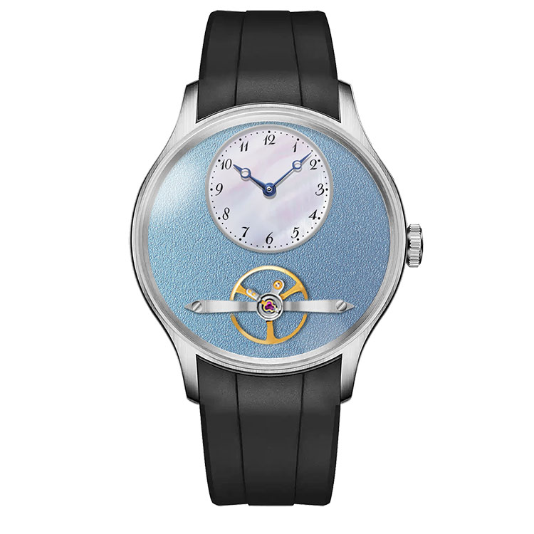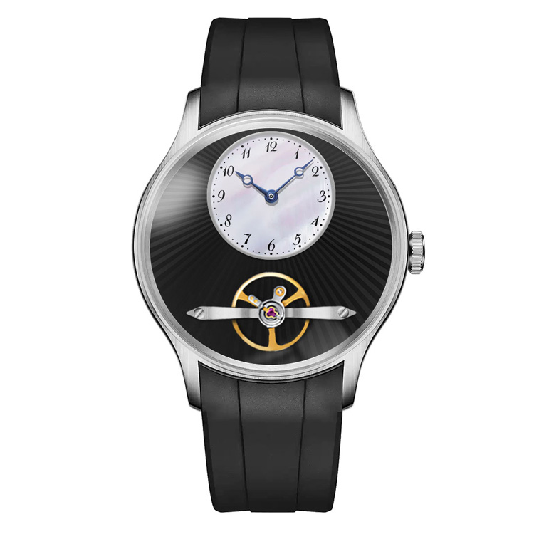 Skeleton rotor at 6 o’clock – A true centerpiece, crafted to resemble a futuristic spacecraft engine. The visible gears rotate dynamically, like the beating core of a starship.Small seconds sub-dial – Positioned like a planet in orbit, it enhances precision while bringing balance and sophistication to the dial.