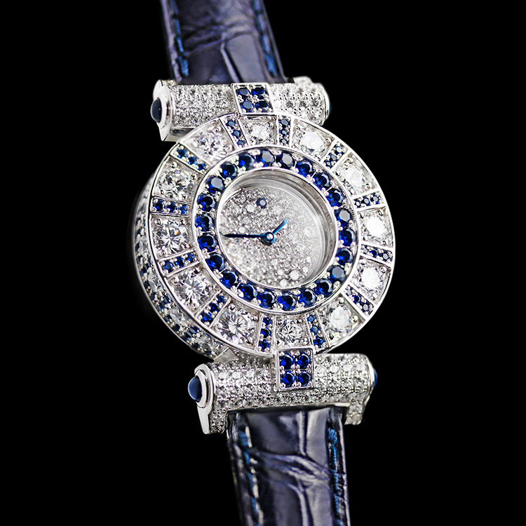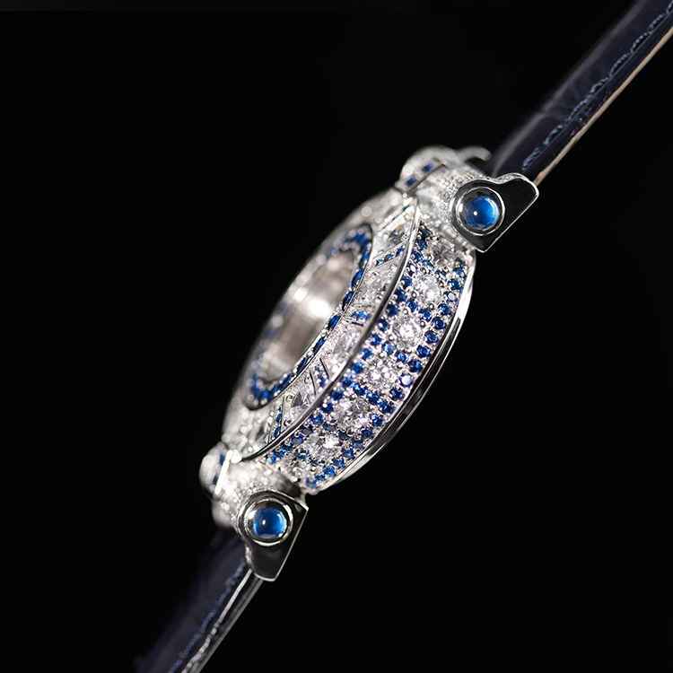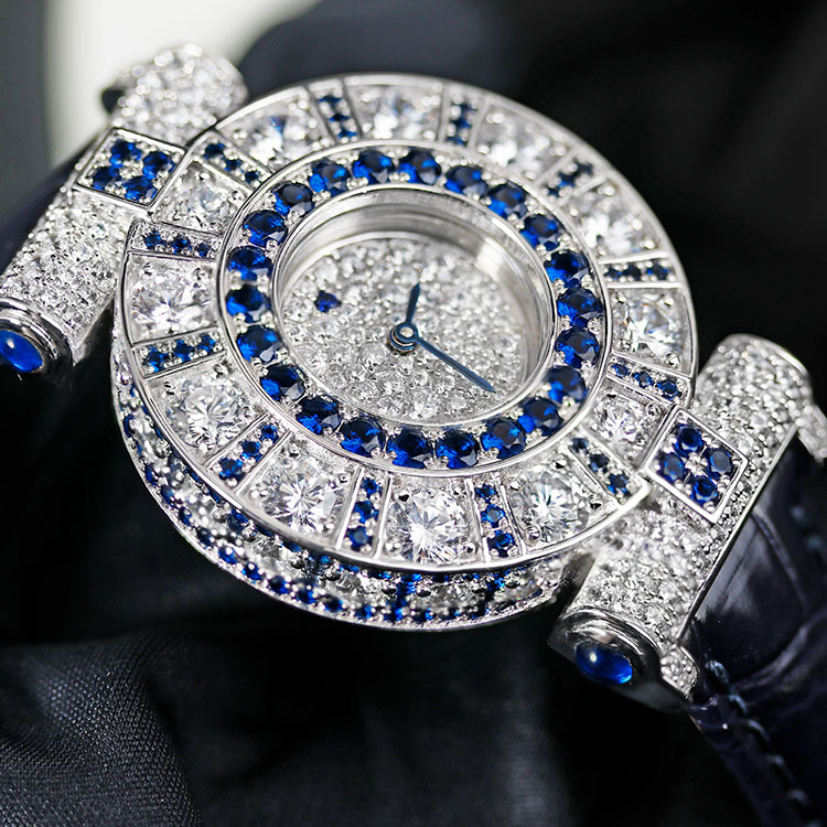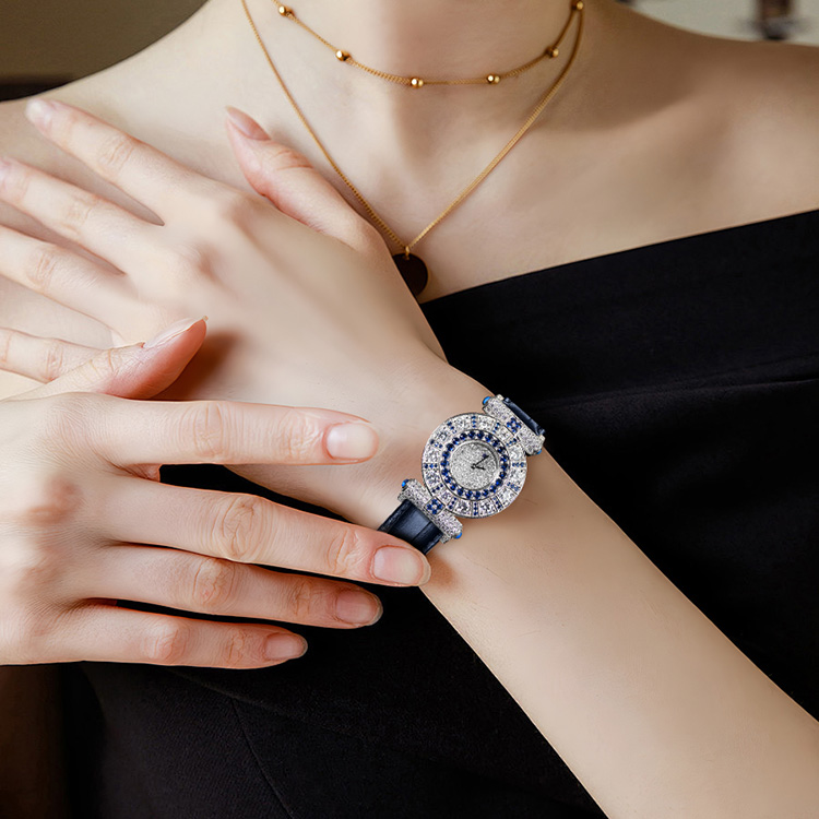 Introducing our stunning collection of mechanical watches. Crafted with S-925 silver, these timepieces feature exquisite blue sapphire and white diamond accents. The round case is elegantly encrusted with diamonds, radiating a luxurious and classy aura.