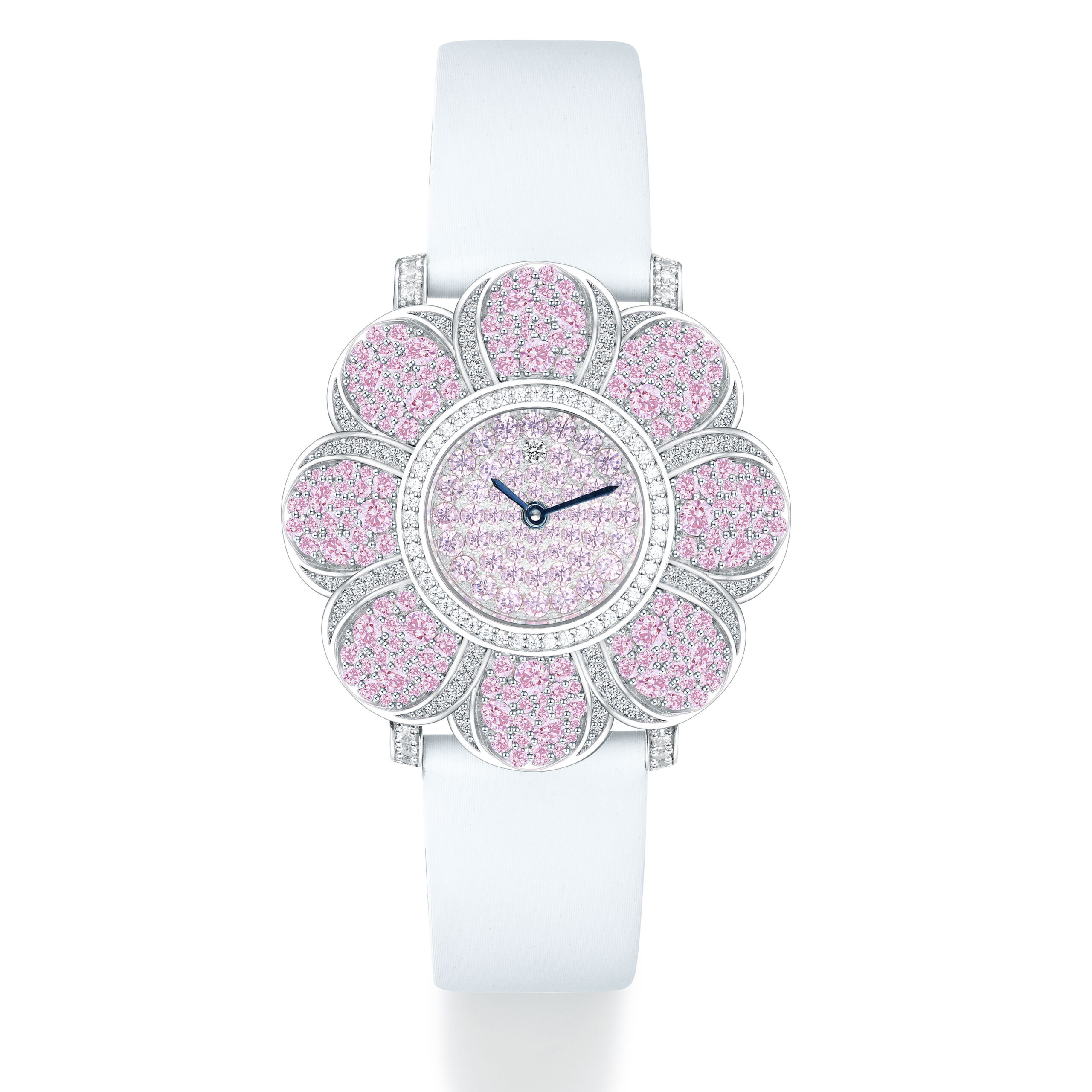 Crafted with S-925 silver, it showcases rare pink diamonds delicately set within the round case, radiating an aura of opulence and grace.