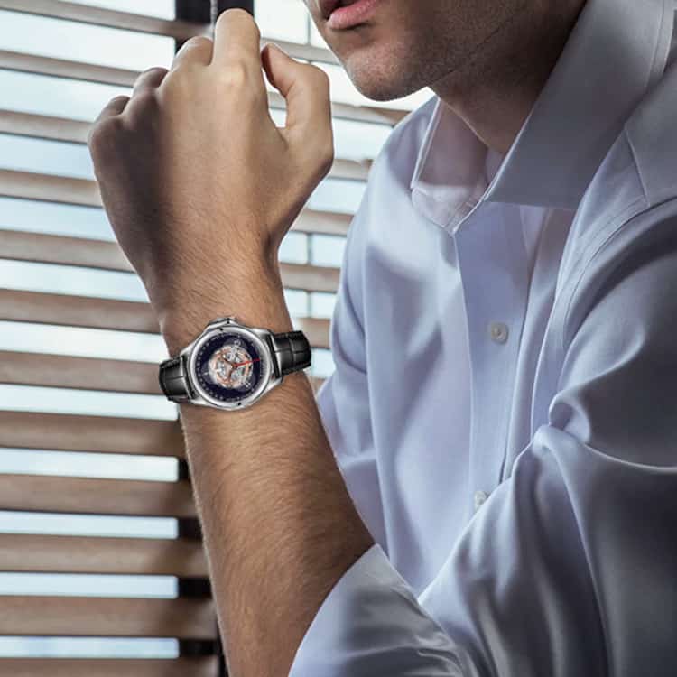 . The two hands, pointing to the hour and minute, symbolize the orbit of the moon and the stars. As the twelve constellations rotate constantly, they forever capture the wearer’s lucky moments in the universe, leaving a charming imprint on the beautiful orbit of the planets.