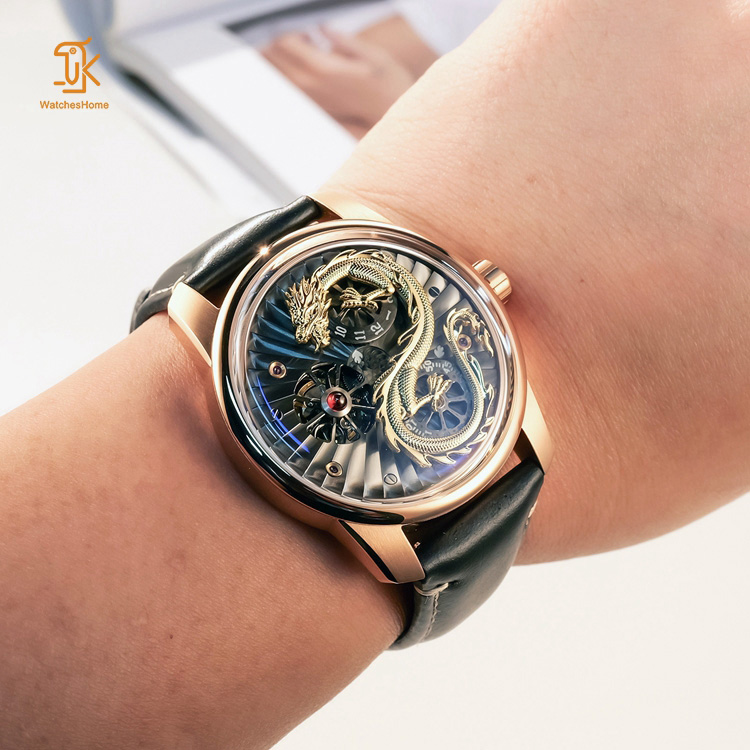 In the world of mechanical watches, a unique timepiece emerges, showcasing the intricate motif of the Chinese dragon. This design fusion harmoniously blends the dragon’s grace with the watch’s mechanical intricacy, creating a captivating masterpiece.