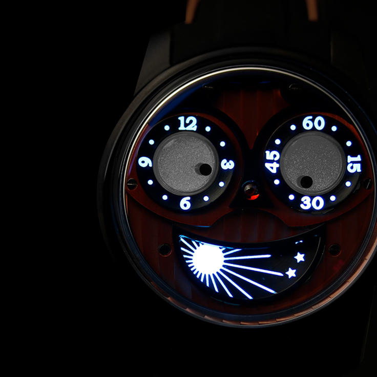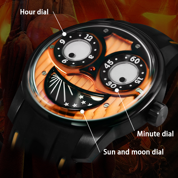 Powered by the modified NH35 movement, this mechanical watch combines innovation with playful charm. The dual-eye dial displays hours . and minutes separately, offering a unique, functional twist that captures attention at first glance.