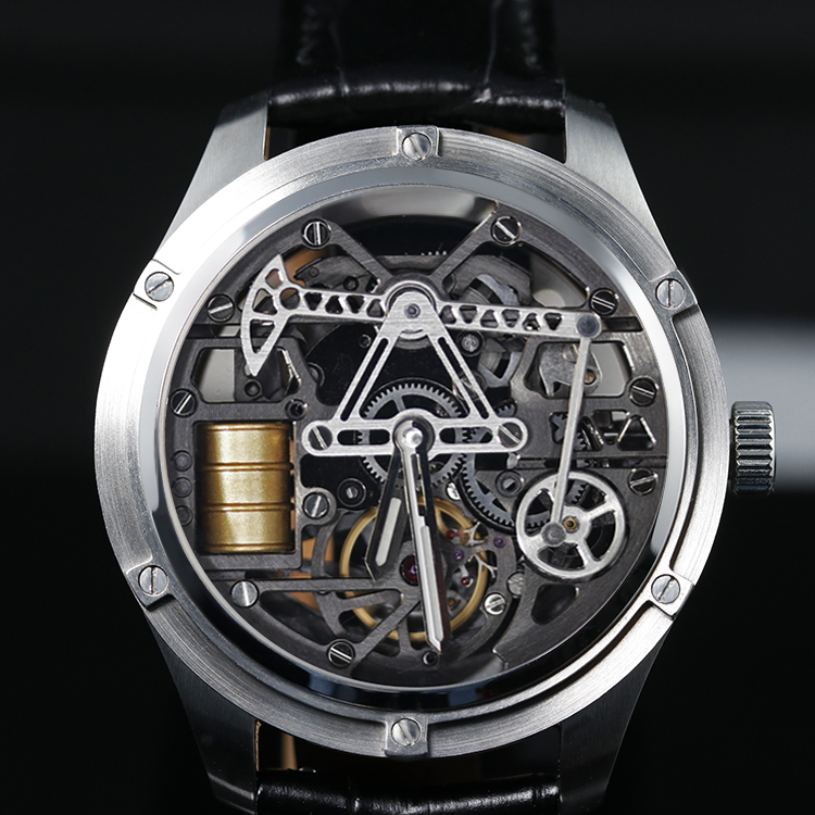 This watch features a dial design based on an oil production machine, with mechanical parts that mesmerizingly rotate back and forth, adding a distinctive mechanical charm. The newly designed stainless steel casing adds a remarkable three-dimensional feel, instantly exuding a masculine charm that catches the eye in any crowd.