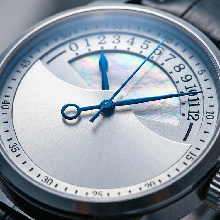 At the same time, the dial design enhances both clarity and elegance. A shimmering mother-of-pearl sector adds depth, while the circular minute track keeps time easy to read. Moreover, the bold blue hands create strong contrast, so you can check the time at a glance. Together, these elements deliver a balanced and refined visual experience.