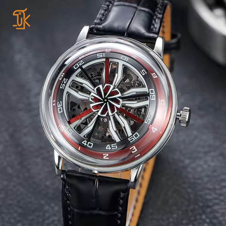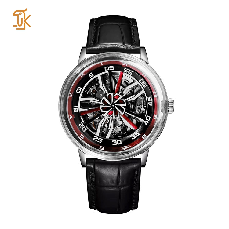 Inspired by racing’s adrenaline, the design features a racing-inspired wheel hub motif at its core. A vivid red chapter ring amplifies legibility, while the central sub-seconds disc adds dynamic flair—transforming timekeeping into a visual spectacle. Form meets function, sharpened for speed.