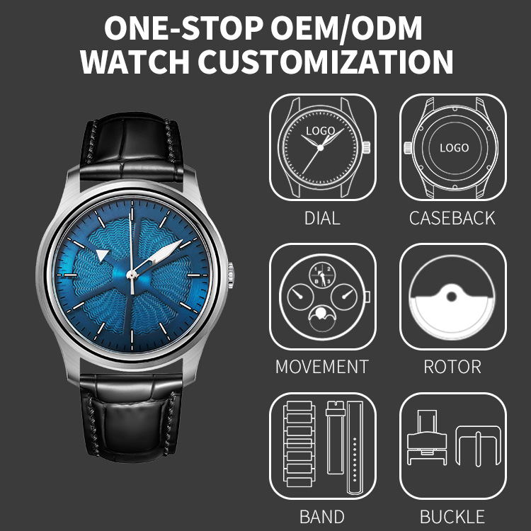 Completing its elegance, the watch is paired with a black crocodile leather strap, showcasing natural grain and meticulous stitching for timeless sophistication. Custom logos and functional upgrades are available, making this watch not just an instrument of precision, but a personal statement of style and artistry.