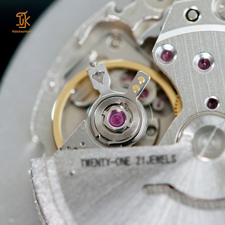Crafted with precision, the stainless steel construction of the Miyota 8215 movement guarantees durability and longevity. Its fine finishing and intricate detailing showcase the craftsmanship involved in its production.
